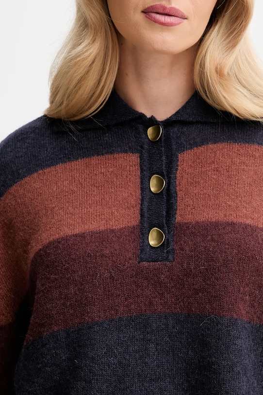 Этот свитер из коллекции Sessun выполнен из тонкого эластичного трикотажа. Содержание шерсти обеспечивает защиту от холода, а добавление полиамида увеличивает прочность изделия. - Изделие содержит переработанные волокнистые материалы. - Свободный крой, обеспечивающий полную свободу движений. - Крой рукава со спущенной линией плеча не ограничивает подвижность. - Мягкий воротник и короткая планка с пуговицами. - Длина рукава (от воротника): 76 см. - Длина: 54 см. - Ширина под мышками: 63 см. - Размеры указаны для размера: S.