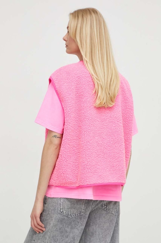 Жилет из коллекции American Vintage. Модель без подкладки, выполнена из флиса. Модель выполнена из тонкого материала, идеально подходящего для теплого времени года. - Данное изделие частично изготовлено из переработанного полиэстера. - Свободный крой, обеспечивающий полную свободу движений. - Застежка-кнопка. - Два прорезных боковых кармана на молнии. - Неутепленная модель с подкладкой. - Длина: 58 см. - Ширина под мышками: 65 см. - Указаны размеры: XS/S.