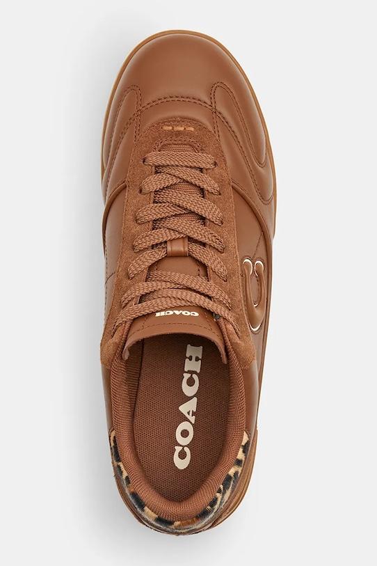 Кроссовки из коллекции Coach. Верх из натуральной кожи непористый, легко чистится влажной тканью. - Круглый, слегка утолщенный носок. - Резиновая подошва прочная и устойчивая к повреждениям. - Жесткий задник стабилизирует пятку и удерживает ногу в обуви, не давая ей выскальзывать во время движения. - Классическая шнуровка позволяет индивидуально подогнать обувь по ноге. - Текстильная внутренняя часть комфортна для ног и облегчает содержание обуви в чистоте.