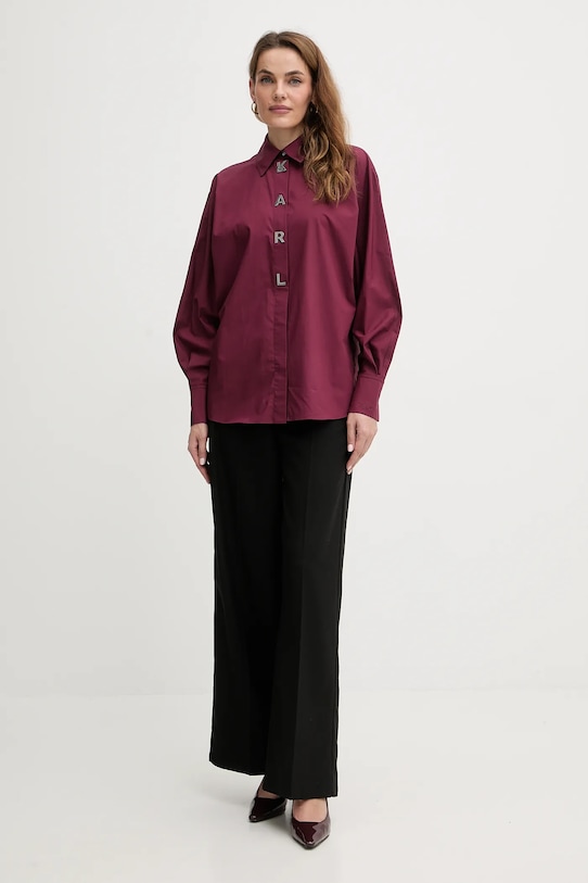 Рубашка из коллекции Karl Lagerfeld из гладкой ткани. - Органический хлопок выращивается без использования вредных химикатов, химических пестицидов и искусственных удобрений. - Свободный крой со спущенными плечами. - Модель с большим декоративным воротником. - Застежка на пуговицы. - Манжеты на пуговицах. - Гладкая ткань.