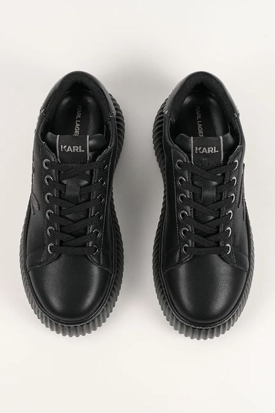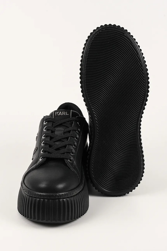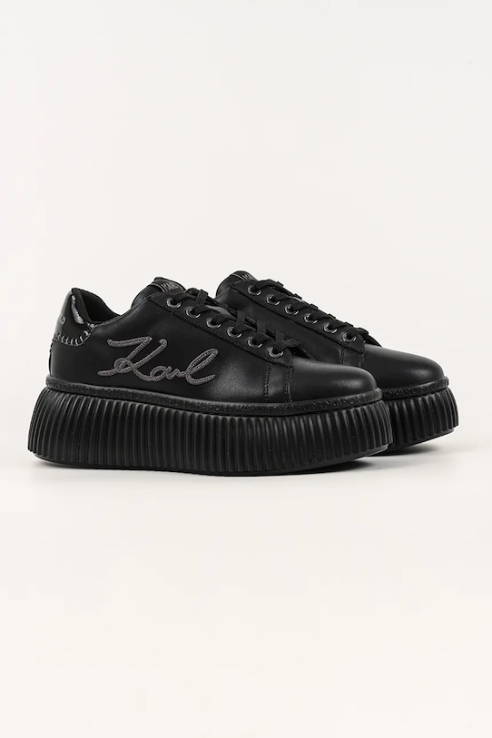 Кроссовки из коллекции Karl Lagerfeld. Верх из натуральной кожи не имеет пор и легко чистится влажной тканью. - Круглый, слегка утолщенный носок. - Жесткий задник стабилизирует пятку и удерживает ногу в обуви, не давая ей выскальзывать во время движения. - Плоские шнурки устраняют давление на подъем стопы, обеспечивая хорошую посадку и комфорт. - Съемная, легко моющаяся вставка. - Платформенная модель. - 3D логотип.