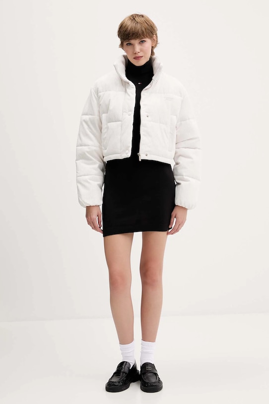Эта куртка из коллекции Tommy Jeans утеплена и изготовлена из стёганой ткани. Она также дополнена синтетическим утеплителем для дополнительного комфорта в прохладную погоду. - Данное изделие частично изготовлено из переработанного полиэстера. - Свободный крой, обеспечивающий полную свободу движений. - Молния по всей длине с пристегивающейся ветрозащитной планкой. - Поднятый воротник обеспечивает дополнительную защиту от холода. - Крой рукава со спущенной линией плеча не ограничивает подвижность. - Рукава отделаны удобными эластичными манжетами. - Нижний край отделан завязками со стопорами, обеспечивающими индивидуальную посадку. - Два боковых кармана с застежкой на кнопку. - Утепленная модель с подкладкой. - Длина рукава (от воротника): 76 см. - Длина: 49 см. - Ширина под мышками: 58 см. - Размеры указаны для размера: S.