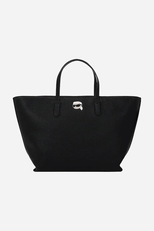 Большая сумка-тоут из коллекции Karl Lagerfeld. Модель на молнии изготовлена из искусственной кожи, которую легко чистить и ухаживать. - Модель частично изготовлена из переработанного полиуретана. Это снижает потребление воды и энергии, а также уменьшает количество отходов. - Длинные ручки для удобной переноски в руке или на плече. - Магнитная застежка. - Имеет внутренние карманы, в том числе один на молнии. - Присоединяемый длинный ремешок с регулировкой. - Глубина: 16,5 см. - Высота: 26,5 см. - Ширина у основания: