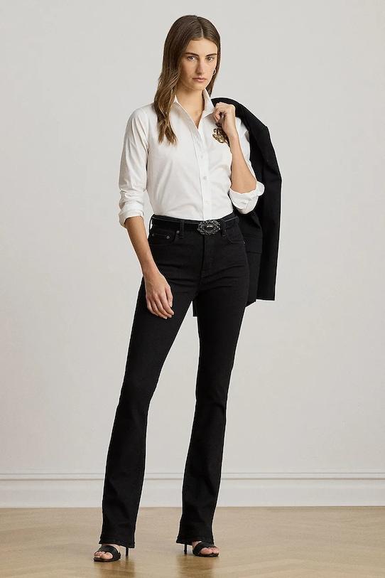 Эта рубашка из коллекции Lauren Ralph Lauren выполнена из тонкой, слегка эластичной ткани. Добавление полиамида обеспечивает большую прочность. - Простой дизайн, не стесняющий движений. - Удобная застежка на кнопки позволяет легко надевать и снимать. - Модель с мягким воротником. - Длинные рукава с манжетами на пуговицах. - Модель с декоративной аппликацией.