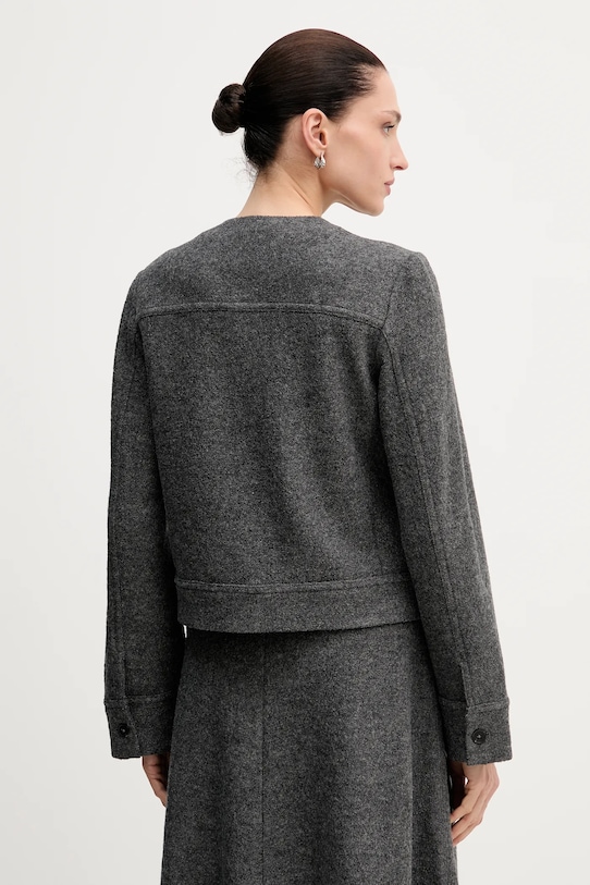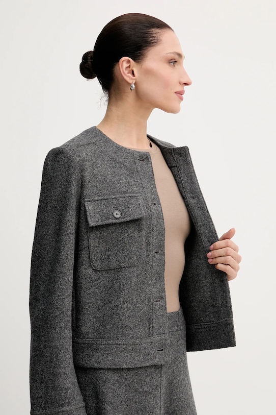 Эта куртка из коллекции Marc O'Polo без подкладки выполнена из гладкого материала. Высокие терморегулирующие свойства шерсти позволяют согреться в холод и охладиться в жару. - В состав продукта входит шерсть, полученная этическим путем, на фермах, где заботятся о надлежащих условиях содержания животных. - Простой дизайн, не стесняющий движений. - Неутепленная модель без подкладки. - Застежка на пуговицы. - Два нагрудных кармана на пуговицах. - Длина рукава: 63 см. - Длина: 48 см. - Ширина под мышками: 47 см. - Ширина плеч: 38 см. - Размеры указаны для размера: 36.