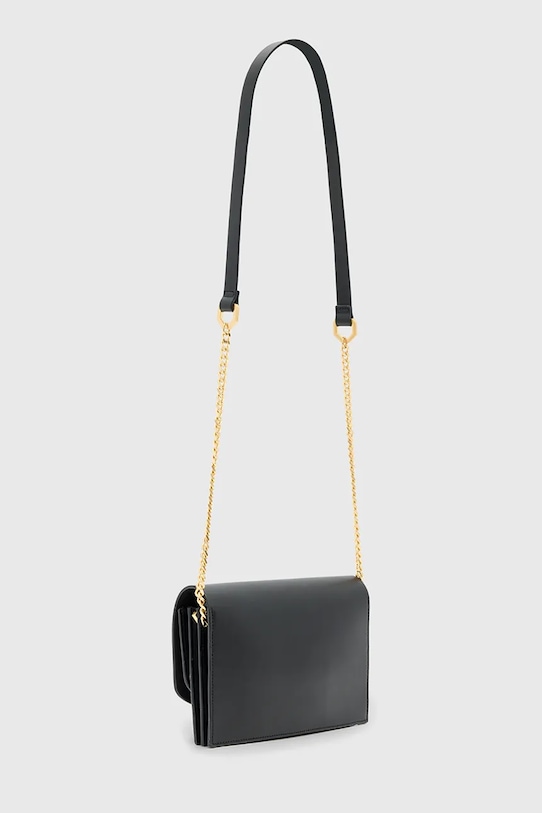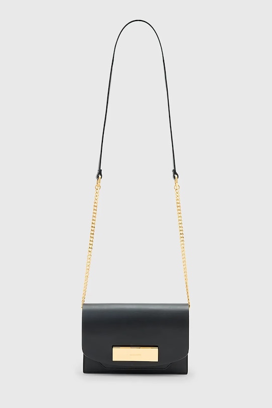 Небольшая сумочка из коллекции AllSaints. Модель на молнии, выполнена из натуральной кожи. - Эта модель изготовлена в соответствии с рекомендациями Leather Working Group, которая сертифицирует кожевенные заводы посредством строгих аудитов. Эти усилия направлены на снижение потребления энергии и воды при дублении кожи, а также на устранение загрязнения сточных вод. - Застежка-кнопка. - Двухкамерная модель. - Съемный длинный ремешок. - Не подходит для формата А4. - Глубина: 4 см. - Высота: 14 см. - Ширина у основания: 20 см.