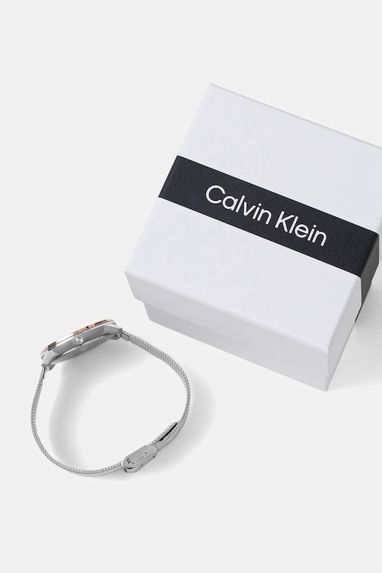 Часы из коллекции Calvin Klein. Модель имеет круглый циферблат и браслет, напоминающий драгоценный камень. - Материал корпуса и браслета: нержавеющая сталь. - Водонепроницаемость: WR. 30M (3ATM) - защита от брызг. - Стекло: минеральное (закаленное, очень устойчивое к ударам, трудно царапается). - Механизм: кварцевый, питание от батареек. - Модель упакована в фирменную коробку. - Ширина ремешка: 17 мм. - Толщина корпуса: 6 мм. - Диаметр корпуса: 33 мм.