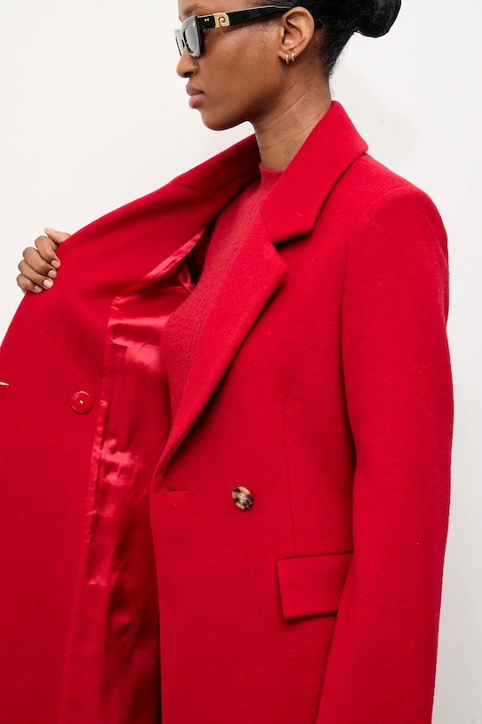 Пальто из коллекции Answear.Lab. Эта переходная модель выполнена из гладкого материала. Высокое содержание шерсти обеспечивает защиту от холода, а добавление полиэстера повышает устойчивость к сминанию. - Простой дизайн, не стесняющий движений. - Дополнительный слой материала в виде подкладки. - Классические лацканы. - Двубортный пиджак с застежкой на пуговицы. - В плечах вшиты подкладки. - Длинный рукав. - Два накладных кармана спереди для удобного хранения мелких предметов. - Модель с декоративными клапанами. - Разрез сзади обеспечивает свободу движений и лучшую подачу материала. - Длина: 128 см. - Длина рукава: 60 см. - Ширина под мышками: 50 см. - Ширина плеч: 40 см. - Размеры указаны для размера: S.