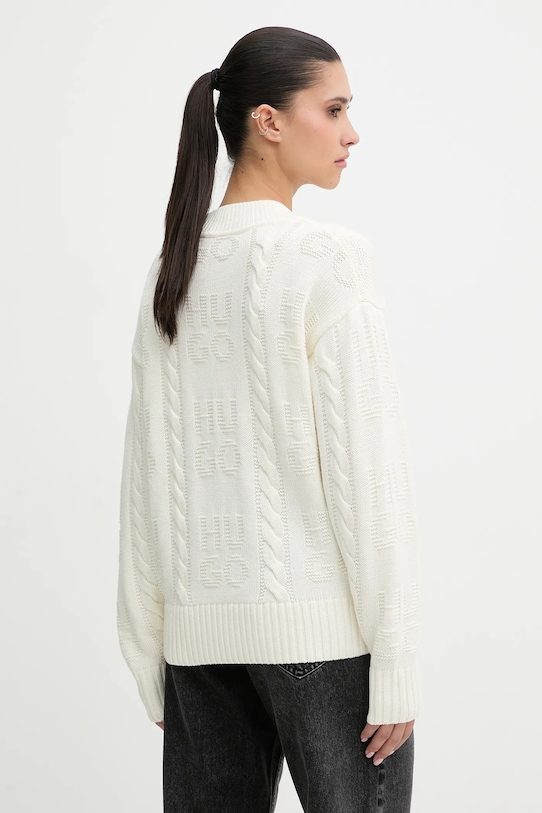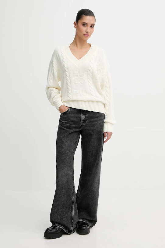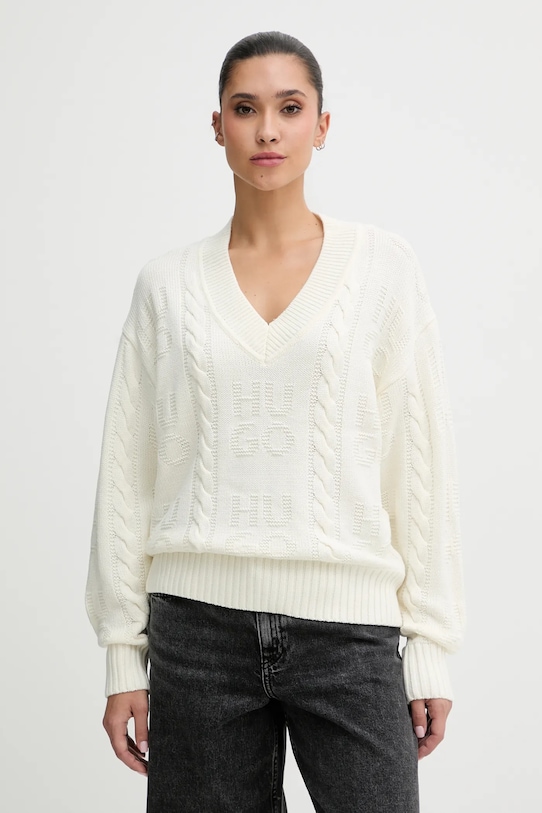 Этот свитер из коллекции HUGO выполнен из гладкой трикотажной ткани. Натуральная шерсть легче традиционной и отличается исключительной мягкостью, нежностью и прочностью. - Свободный крой, обеспечивающий полную свободу движений. - Острый вырез. - Рукава и нижний край отделаны удобными эластичными манжетами. - Эластичный трикотаж средней плотности. - Длина рукава (от горловины): 74 см. - Длина: 60 см. - Ширина под мышками: 50 см. - Размеры указаны для размера: S.
