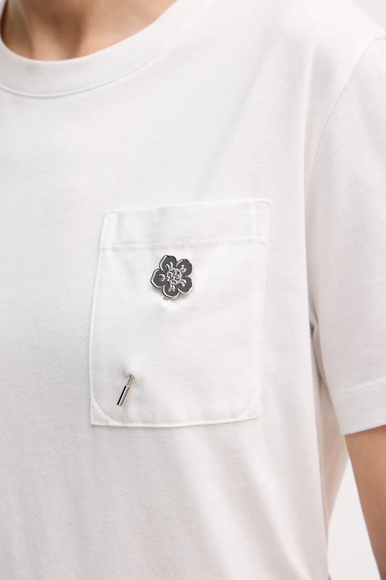 Эта футболка из коллекции Kenzo выполнена из тонкой эластичной ткани. Она дополнена эффектной брошью.