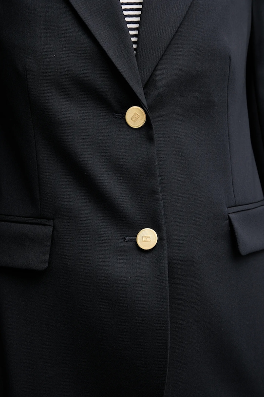 Эта куртка Tommy Hilfiger сшита из гладкой ткани. Высокие терморегулирующие свойства шерсти позволяют сохранять тепло в холод и прохладу в жару. - Изделие содержит переработанные волокнистые материалы. - Простой дизайн, не стесняющий движений. - В плечах вшиты подкладки. - Классические лацканы. - Удобная застежка на кнопки позволяет легко надевать и снимать. - Два накладных кармана спереди. - Дополнительный слой материала в виде подкладки. - Длина рукава: 60 см. - Длина: 65 см. - Ширина под мышками: 43 см. - Ширина плеч: 37 см. - Размеры указаны для размера: 36.