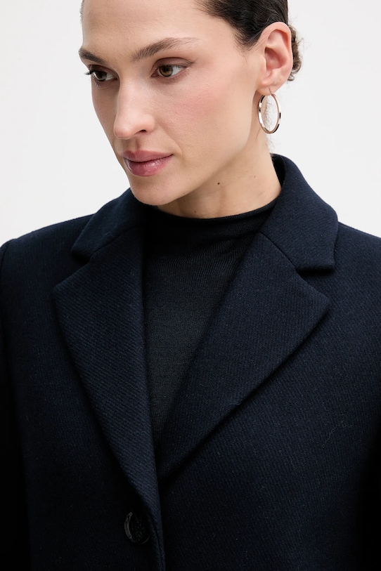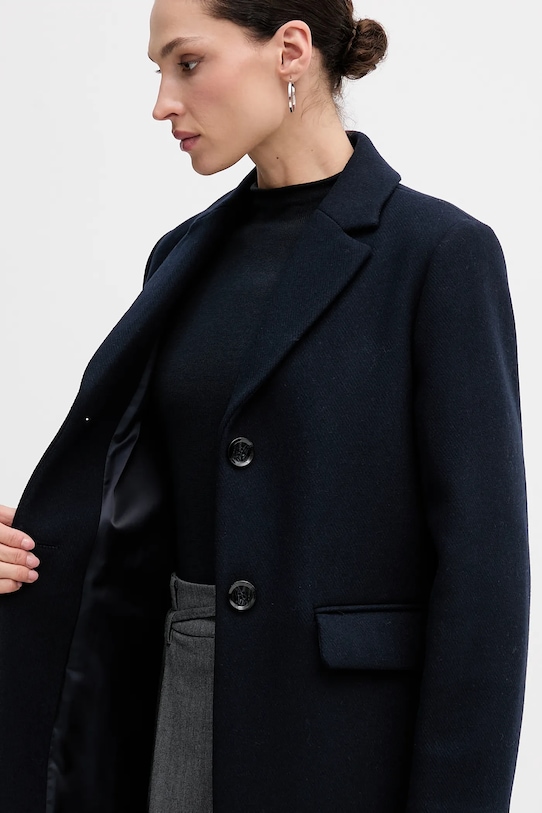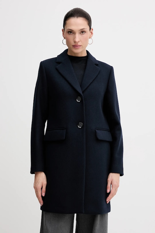 Это пальто из коллекции Sisley – переходный фасон, выполненный из гладкой ткани. Высокое содержание шерсти обеспечивает защиту от холода, а добавление полиэстера повышает устойчивость к сминанию. - Простой дизайн, не стесняющий движений. - Дополнительный слой материала в виде подкладки. - Классические лацканы. - Однобортный пиджак с застежкой на пуговицы. - Два накладных кармана спереди. - Модель с декоративными клапанами. - Длина рукава: 60 см. - Длина: 88 см. - Ширина под мышками: 48 см. - Ширина плеч: 38 см. - Размеры указаны для размера: 36.