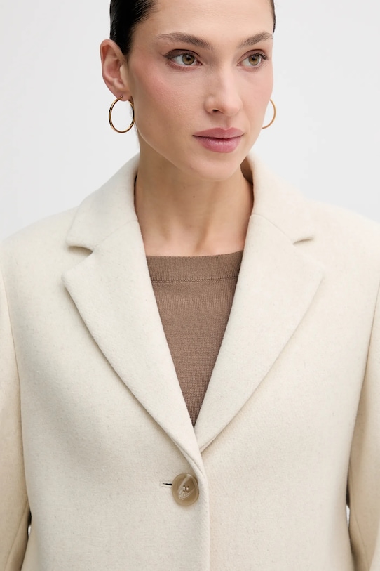 Это пальто из коллекции Sisley – переходный фасон, выполненный из гладкой ткани. Высокое содержание шерсти обеспечивает защиту от холода, а добавление полиэстера повышает устойчивость к сминанию. - Простой дизайн, не стесняющий движений. - Дополнительный слой материала в виде подкладки. - Классические лацканы. - Однобортный пиджак с застежкой на пуговицы. - Два накладных кармана спереди. - Модель с декоративными клапанами. - Длина рукава: 60 см. - Длина: 88 см. - Ширина под мышками: 48 см. - Ширина плеч: 38 см. - Размеры указаны для размера: 36.