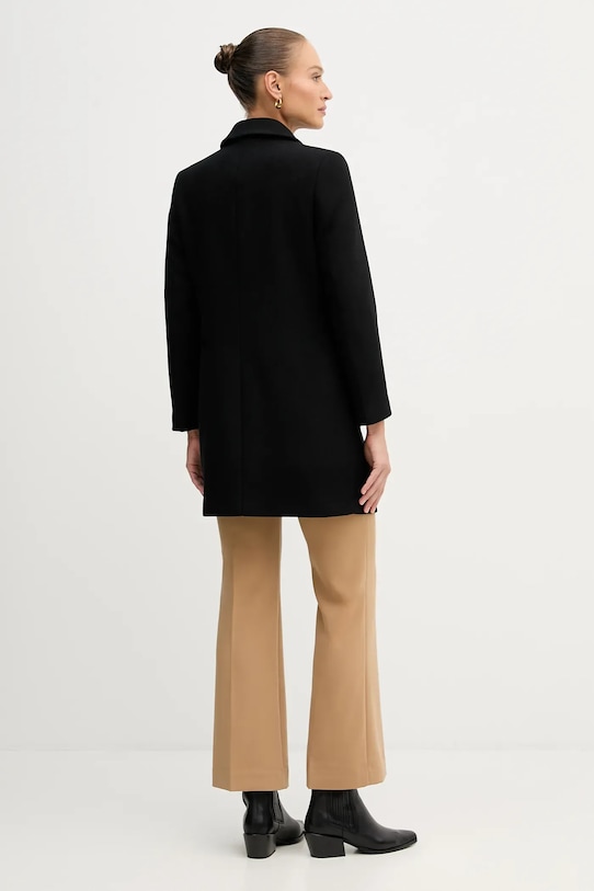 Это пальто из коллекции Sisley – переходный фасон, выполненный из гладкой ткани. Высокое содержание шерсти обеспечивает защиту от холода, а добавление полиэстера повышает устойчивость к сминанию. - Простой дизайн, не стесняющий движений. - Дополнительный слой материала в виде подкладки. - Классические лацканы. - Однобортный пиджак с застежкой на пуговицы. - Два накладных кармана спереди. - Модель с декоративными клапанами. - Длина рукава: 60 см. - Длина: 88 см. - Ширина под мышками: 48 см. - Ширина плеч: 38 см. - Размеры указаны для размера: 36.