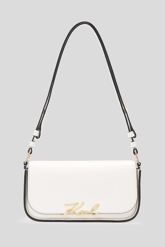 Маленькая сумочка из коллекции Karl Lagerfeld. Модель с застёжкой-крючком, выполнена из натуральной кожи. - Модели линейки Karl Cares изготовлены из материалов, произведенных в ходе устойчивого, экологически чистого процесса производства. - Клапан застегивается на магнит. - Модель без подкладки. - Внутренний карман. - Сумка для ношения в руке или на плече. - Несъемный длинный ремешок с регулировкой. - Не подходит для формата А4. - Входящий в комплект тканевый чехол защищает изделие от пыли. - Глубина: 6 см. - Высота: 11 см. - Ширина у основания: 24 см.