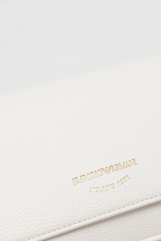 Небольшая сумочка из коллекции Emporio Armani. Модель на молнии, выполнена из экокожи.