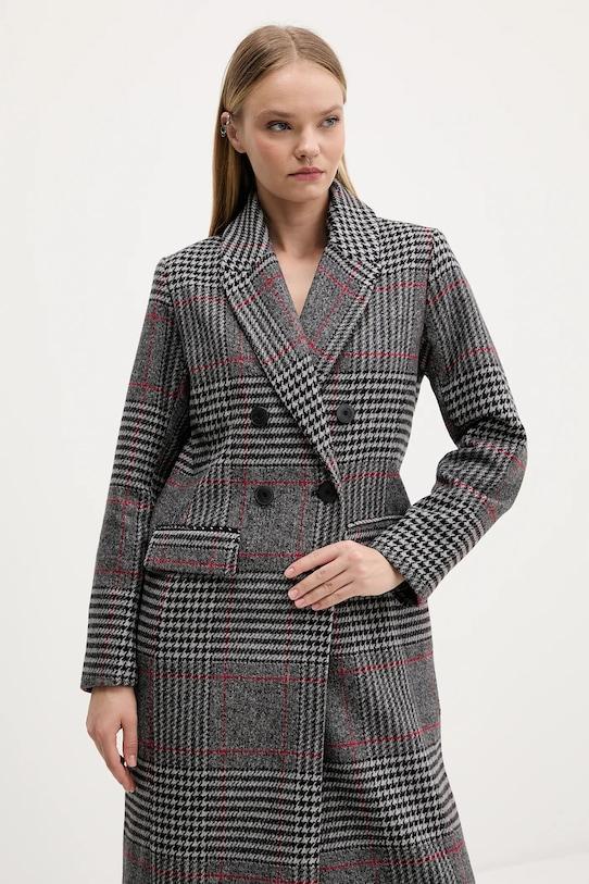 Это пальто из коллекции Desigual без подкладки сшито из ткани с рисунком. Содержание шерсти обеспечивает защиту от холода, а полиэстер повышает устойчивость к сминанию. - Неутепленная модель с подкладкой. - Двубортный пиджак с застежкой на пуговицы. - Съемный капюшон. - Модель с карманами, декорированными клапанами. - Клетчатый узор. - Длина рукава: 59 см. - Длина: 110 см. - Ширина под мышками: 53 см. - Размеры указаны для размера: S.
