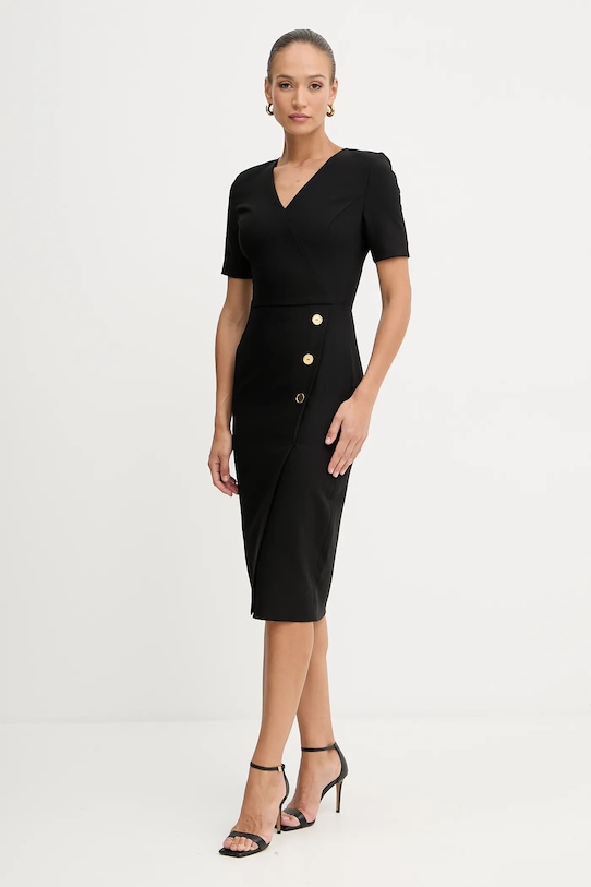 Это платье из коллекции Marciano Guess выполнено из гладкой ткани. Полиэстер обеспечивает повышенную устойчивость к сминанию. - Приталенный крой, подчеркивающий силуэт. - Модель на подкладке. - Острый вырез. - Короткий рукав. - Застегивается на потайную молнию и крючок сзади. - Декоративные пуговицы. - Тонкая, слегка эластичная ткань. - Длина: 115 см. - Ширина под мышками: 48 см. - Ширина талии: 37 см. - Ширина бедер: 47 см. - Размеры указаны для размера: 36.