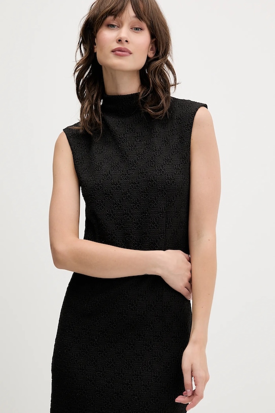 Платье из коллекции HUGO из тонкого, эластичного трикотажа. Модель выполнена из эластичного материала, который адаптируется к фигуре. - Приталенный крой, подчеркивающий силуэт. - Дополнительный слой материала в виде подкладки. - Водолазка, плотно прилегающая к шее, обеспечивает дополнительную защиту от холода. - Потайная застежка-молния сзади. - Впечатляющий крой. - Материал с металлической нитью. - Длина: 132 см. - Ширина под мышками: 40 см. - Размеры указаны для размера: S.