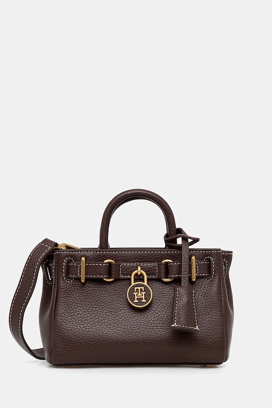 Небольшая сумочка из коллекции Tommy Hilfiger. Модель на молнии, выполнена из натуральной кожи. - Застежка-молния. - Имеет ручки и съемный регулируемый ремень. - Модель оснащена металлическими ножками, которые защищают дно сумки. - Не подходит для формата А4. - Входящий в комплект тканевый чехол защищает изделие от пыли. - Внутренний накладной карман. - Минимальная длина ремешка: 96 см. - Максимальная длина ремня: 110 см. - Длина ручки: 17 см. - Глубина: 9 см. - Высота: 12,5 см. - Ширина у основания: 19 см.