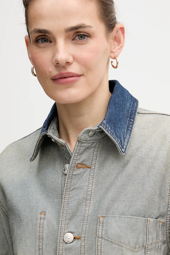 Джинсовая куртка из коллекции Calvin Klein Jeans. Изготовлена из денима и исключительно комфортного хлопка. - Свободный крой, обеспечивающий полную свободу движений. - Удобная застежка на кнопки позволяет легко надевать и снимать. - Манжеты на пуговицах. - Три накладных кармана спереди. - Дополнительный внутренний карман позволяет безопасно хранить мелкие предметы. - Модель с воротником. - Длина рукава: 63 см. - Длина: 67 см. - Ширина под мышками: 53 см. - Размеры указаны для размера: S.