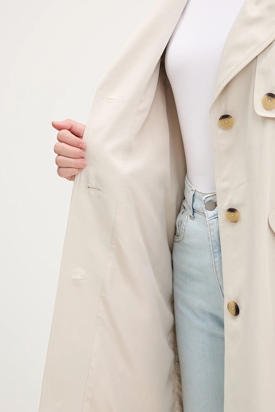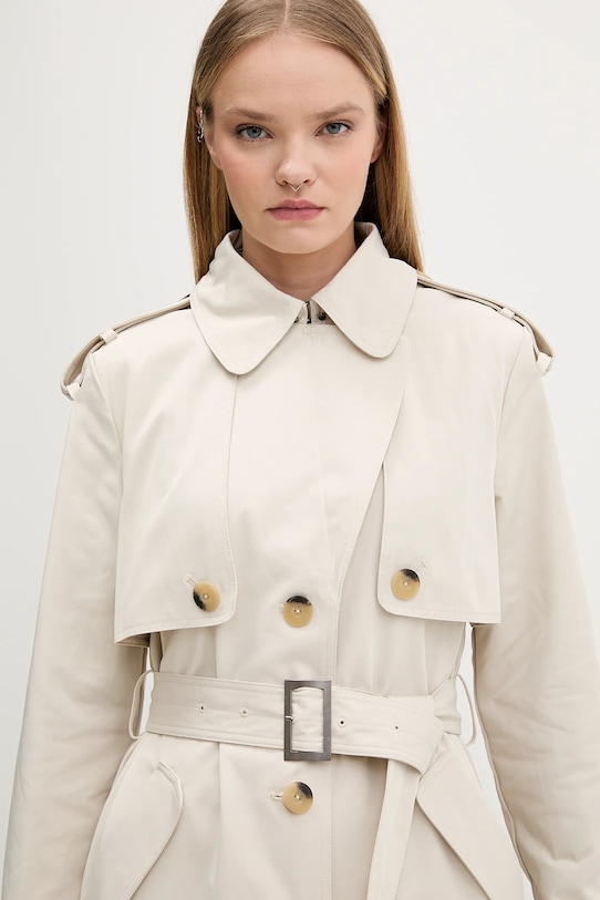 Тренч из коллекции Desigual. Модель без подкладки выполнена из гладкой ткани. Полиэстер обеспечивает повышенную устойчивость к сминанию. - Неутепленная модель с подкладкой. - Однобортный пиджак с застежкой на пуговицы. - Два боковых накладных кармана. - Модель с декоративными клапанами. - Пояс на талии корректирует фигуру и еще больше подчеркивает талию. - Длина рукава: 59 см. - Длина: 112 см. - Ширина под мышками: 52 см. - Ширина плеч: 43 см. - Размеры указаны для размера: S.