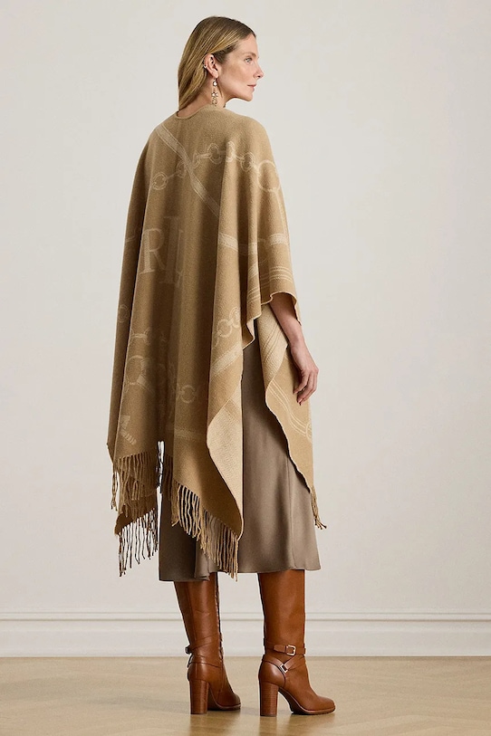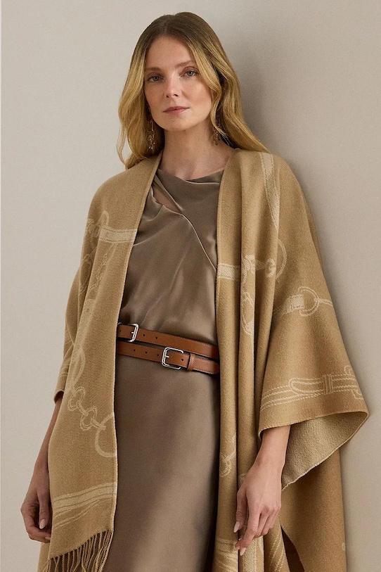 Шерстяное пончо Lauren Ralph Lauren, бежевый