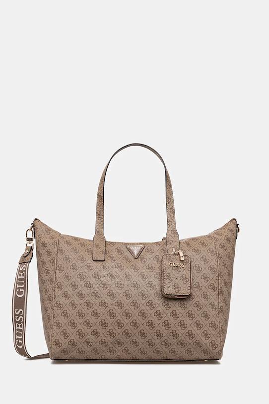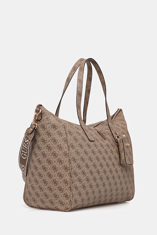 Большая сумка-шоппер из коллекции Guess. Модель на молнии, выполнена из экокожи. В комплект входит небольшой мешочек. - Застежка-молния. - Вмещает формат А4. - Модель на подкладке. - Три внутренних кармана: один на молнии, два накладных. - Карман на молнии сзади. - Ремешок на задней панели позволяет прикрепить к ручке чемодана. - Сумка для ношения в руке или на плече. - Имеет ручки и съемный регулируемый ремень. - Модель оснащена металлическими ножками, которые защищают дно сумки. - Усиленное дно сумки позволяет изделию долго сохранять форму. - Входящий в комплект тканевый чехол защищает изделие от пыли. - Длина ручки: 55 см. - Глубина: 20 см. - Высота: 36 см. - Ширина у основания: 40 см.