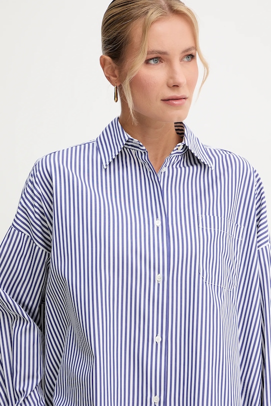 Эта рубашка из коллекции Weekend от Max Mara выполнена из тонкой, неэластичной ткани. Модель выполнена из дышащего хлопкового материала. - Рубашка свободного кроя отличается свободным кроем, обеспечивает комфорт и не стесняет движений. - Заниженная линия плеча. - Застежка на пуговицы. - Более длинная спина. - Полосатый рисунок. - Нагрудный карман. - Длина рукава (от воротника): 71 см. - Ширина под мышками: 70 см. - Длина спереди: 58 см. - Длина спинки: 65 см. - Размеры указаны для размера: 40.