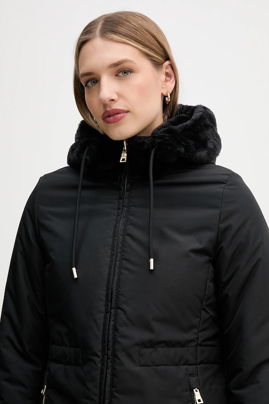 - Поднятый воротник и несъемный капюшон обеспечивают дополнительную защиту от холода.