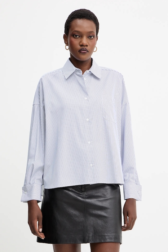 Эта рубашка из коллекции Weekend от Max Mara выполнена из тонкой, неэластичной ткани. Модель выполнена из дышащего хлопкового материала. - Рубашка свободного кроя отличается свободным кроем, обеспечивает комфорт и не стесняет движений. - Заниженная линия плеча. - Застежка на пуговицы. - Более длинная спина. - Полосатый рисунок. - Нагрудный карман. - Длина рукава (от воротника): 71 см. - Ширина под мышками: 70 см. - Длина спереди: 58 см. - Длина спинки: 65 см. - Размеры указаны для размера: 40.