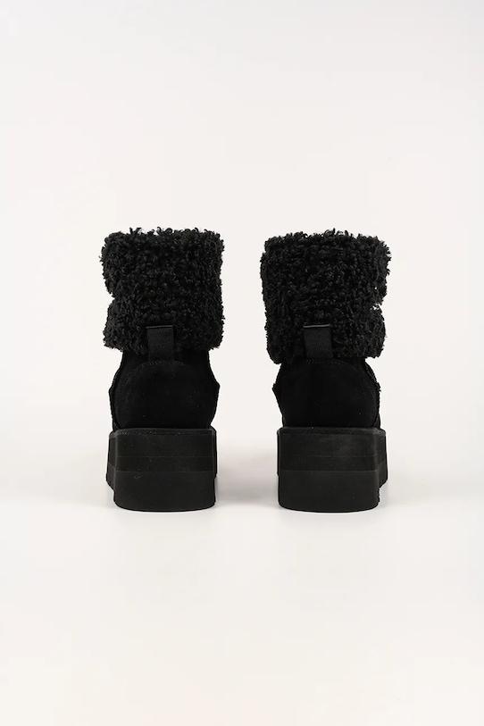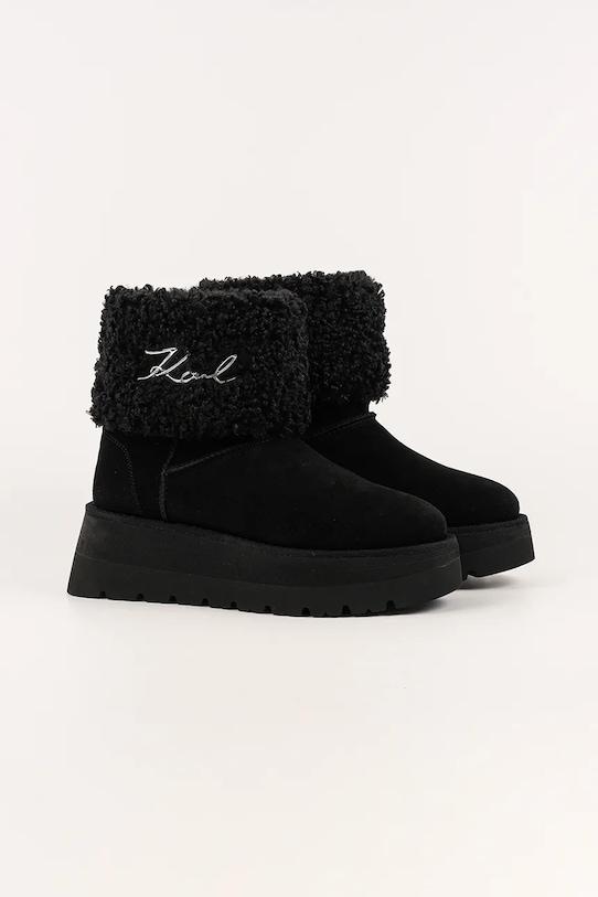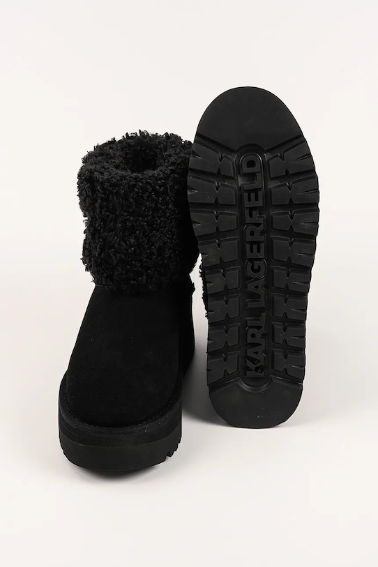 Зимние ботинки из коллекции Karl Lagerfeld. Изготовленные из комбинации замши и текстиля, с мягкой внутренней подкладкой, они обеспечивают исключительный комфорт. - Круглый, жёсткий носок. - Жесткий задник стабилизирует пятку и удерживает ногу в обуви, не давая ей выскальзывать во время движения. - Текстильная внутренняя часть комфортна для ног и облегчает содержание обуви в чистоте. - Петля сзади облегчает надевание и снятие обуви. - Приподнятый верх помогает укрепить ногу в области лодыжки, что защищает от неконтролируемых движений при движении по неровной поверхности. - Платформенная модель.