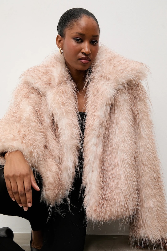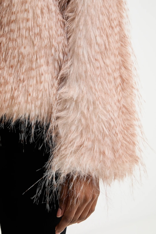 Куртка из коллекции Answear.Lab. Переходный фасон, выполненный из искусственного меха. Мягкий и приятный на ощупь материал. - Свободный крой, обеспечивающий полную свободу движений. - Дополнительный слой материала в виде подкладки увеличивает покрытие и обеспечивает дополнительный комфорт во время активности. - Модель с мягким воротником. - Крой рукава со спущенной линией плеча не ограничивает подвижность. - Два боковых накладных кармана. - Модель без застежки. - Плотная, неэластичная ткань. - Длина рукава (от воротника): 68 см. - Длина: 56 см. - Ширина под мышками: 56 см. - Указаны размеры: S/M.