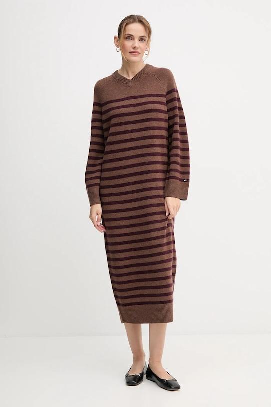 Это платье Tommy Hilfiger сшито из плотного эластичного трикотажа. Высокие терморегулирующие свойства шерсти помогают согреться в холод и охладиться в жару. - Модель частично изготовлена из переработанной шерсти. - Свободный крой, обеспечивающий полную свободу движений. - Декоративный, заостренный вырез. - Рукава реглан благодаря своей конструкции обеспечивают большую свободу движений. - Рукава и низ изделия отделаны манжетами для защиты от неблагоприятных погодных условий. - Модель без застежки. - Модель без подкладки. - Длина рукава (от горловины): 74,5 см. - Длина: 125 см. - Ширина под мышками: 58 см. - Ширина талии: 57 см. - Размеры указаны для размера: S.