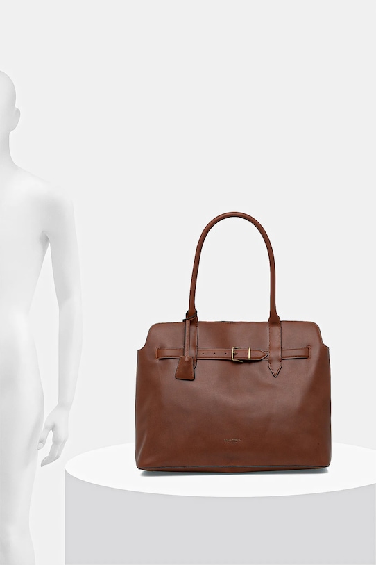 Большая сумка из коллекции Marc O'Polo. Модель на молнии из натуральной кожи. - Эта модель изготовлена в соответствии с рекомендациями Leather Working Group, которая сертифицирует кожевенные заводы посредством строгих аудитов. Эти усилия направлены на снижение потребления энергии и воды при дублении кожи, а также на устранение загрязнения сточных вод. - Магнитная застежка. - Ручки для удобной переноски в руке или на плече. - Вмещает формат А4. - Модель оснащена металлическими ножками, которые защищают дно сумки. - Входящий в комплект тканевый чехол защищает изделие от пыли. - Внутренний карман на молнии. - Ремешок на задней панели позволяет прикрепить к ручке чемодана. - Длина ручки: 57 см. - Глубина: 13 см. - Ширина у основания: 42 см. - Высота: 32 см.