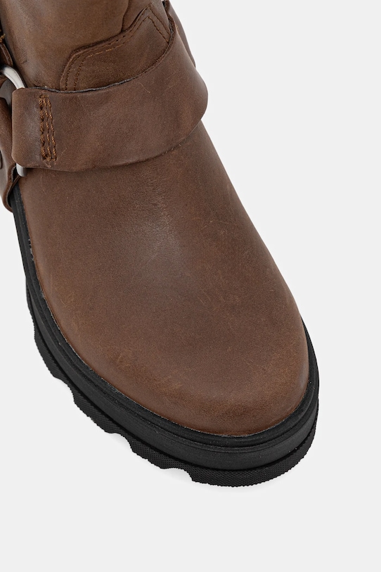 Ботинки из коллекции Sorel из натуральной кожи. Верх из непористой ткани легко чистится влажной тканью. - Подошва из вспененного ЭВА. Водостойкость означает повышенную устойчивость к воздействию воды. Изделие сохраняет свои свойства при контакте с водой, что обеспечивает больший комфорт благодаря более низкому порогу водопроницаемости, но не гарантирует полной водонепроницаемости. - Круглый нос. - Резиновая подошва прочная и устойчивая к повреждениям.