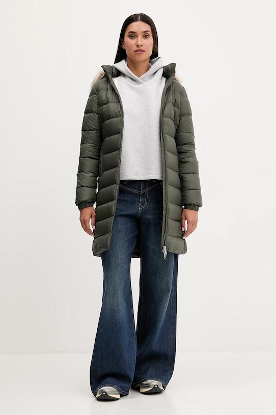 Эта куртка из коллекции Tommy Jeans утеплена и изготовлена из гладкого материала. Стёганая конструкция с наполнителем из натурального пуха и пера гарантирует высокий уровень защиты от холода. - Данное изделие частично изготовлено из переработанного полиэстера. - Приталенный крой обеспечивает комфорт во время занятий. - Наполнитель - пух и перо в соотношении 70/30. - Поднятый воротник с подкладкой из мягкого материала для максимального комфорта. - Съемный капюшон обеспечивает дополнительное тепло и защиту при необходимости. - Капюшон со съемным искусственным мехом. - Рукава отделаны удобными эластичными манжетами. - Удобная застежка-молния позволяет легко надевать и снимать. - Два боковых кармана с застежкой на кнопку. - Внутренняя часть кармана отделана флисом. - Длина рукава: 64 см. - Длина: 90 см. - Ширина под мышками: 46 см. - Ширина плеч: 38 см. - Размеры указаны для размера: S.