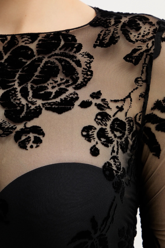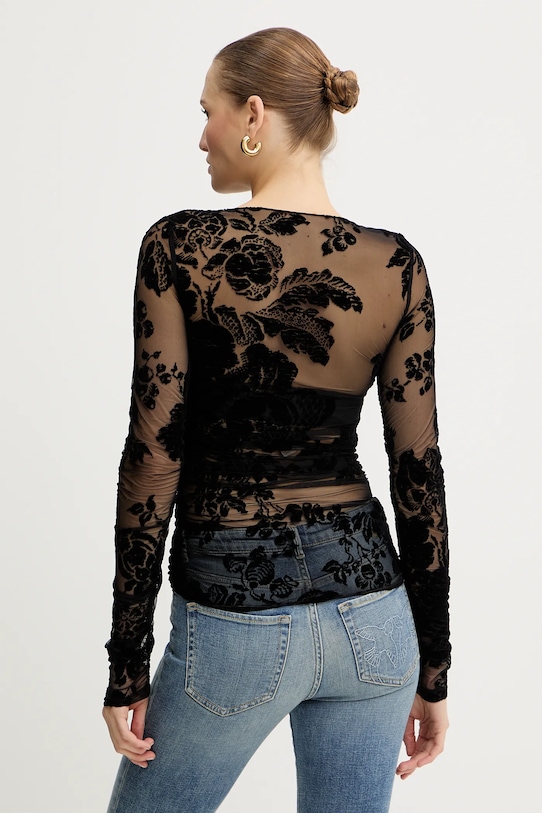 Эта блузка Pinko выполнена из прозрачной ткани. Слегка тянущийся материал обеспечивает полную свободу движений. - Простой дизайн, не стесняющий движений. - Классический круглый вырез. - Модель с декоративными оборками. - Длина рукава: 62 см. - Длина: 66 см. - Ширина под мышками: 36 см. - Размеры указаны для размера: S.