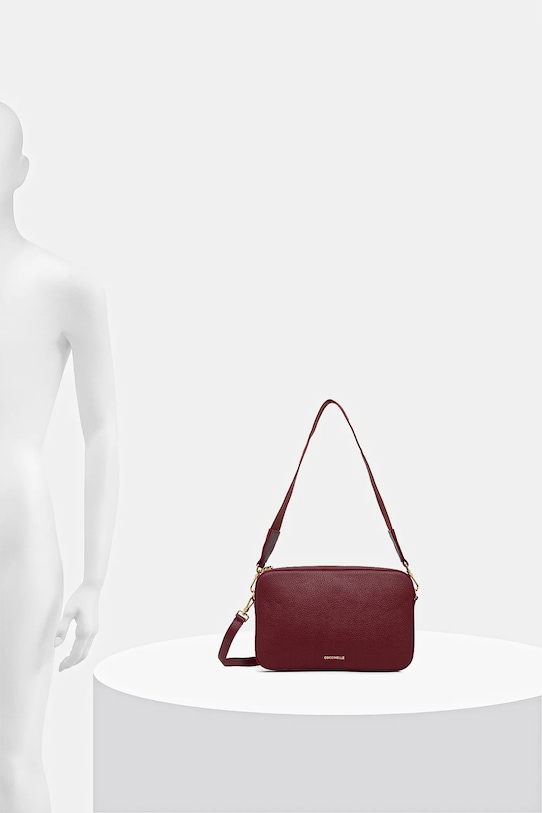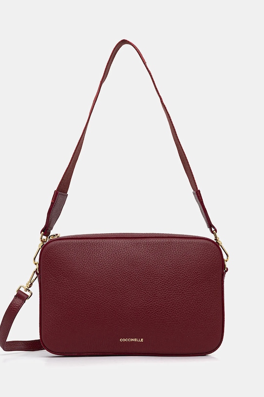Небольшая сумочка из коллекции Coccinelle. Модель на молнии, выполнена из натуральной кожи. - Застежка-молния. - Модель на подкладке. - Внутренних карманов нет. - Сумка для ношения в руке или на плече. - Не подходит для формата А4. - Имеет съемную ручку и съемный регулируемый ремень. - Входящий в комплект тканевый чехол защищает изделие от пыли. - Минимальная длина ремешка: 107 см. - Максимальная длина ремня: 137 см. - Длина ручки: 65 см. - Глубина: 4 см. - Высота: 24,5 см. - Ширина у основания: 15,5 см.