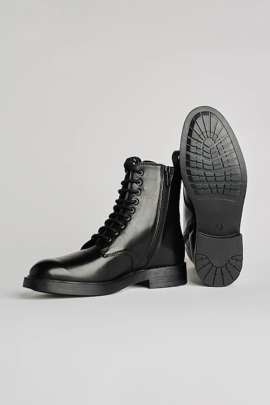 Ботильоны из коллекции Karl Lagerfeld. Верх из натуральной кожи не имеет пор и легко чистится влажной тканью. - Сильно затвердевший нос. - Жесткий задник стабилизирует пятку и удерживает ногу в обуви, не давая ей выскальзывать во время движения. - Классическая шнуровка позволяет индивидуально подогнать посадку. - Кожаная стелька комфортна для стопы и предотвращает натирание, потертости и появление неприятного запаха. - Петля сзади облегчает надевание и снятие обуви. - Резиновая подошва прочная и устойчивая к повреждениям.