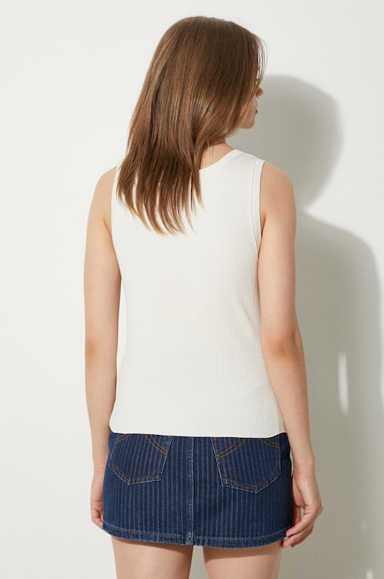 Этот топ Kenzo выполнен из аппликационного трикотажа. Он изготовлен из исключительно комфортного материала с высоким содержанием вискозы. - Приталенный крой, не стесняющий движений. - Классический круглый вырез. - Тонкий, эластичный трикотаж. - Модель выполнена из трикотажного полотна в рубчик. - Длина: 57 см. - Ширина под мышками: 37 см. - Размеры указаны для размера: M.