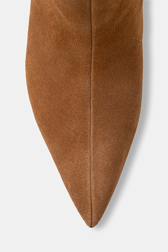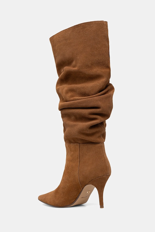Ботинки из коллекции Aldo из замши. - Заостренный, мягкий нос. - Усиленный задник обеспечивает отличную поддержку лодыжки и пятки. - Модель с застежкой-молнией. - Мягкая подкладка из текстильного материала предотвращает раздражение и обеспечивает высокий комфорт при ношении. - Модель на шпильке. - Верхняя окружность: 40 см. - Высота голенища: 38 см. - Высота каблука: 8,5 см. - Длина вставки: 24,5 см. - Размеры указаны для размера: 37.