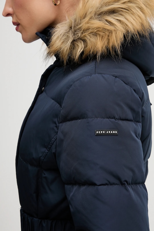Эта куртка из коллекции Pepe Jeans утеплена и изготовлена из гладкого материала с наполнителем из натурального пуха и пера, что обеспечивает высокий уровень защиты от холода. - Стеганая модель. - Пояс на талии. - Капюшон со съемным искусственным мехом. - Застежка-молния и кнопки. - Рукава отделаны удобными эластичными манжетами. - Два прорезных боковых кармана на молнии. - Внутренняя часть кармана отделана флисом, что повышает защиту от холода. - Длина рукава: 65 см. - Длина: 77 см. - Ширина под мышками: 47 см. - Размеры указаны для размера: S.