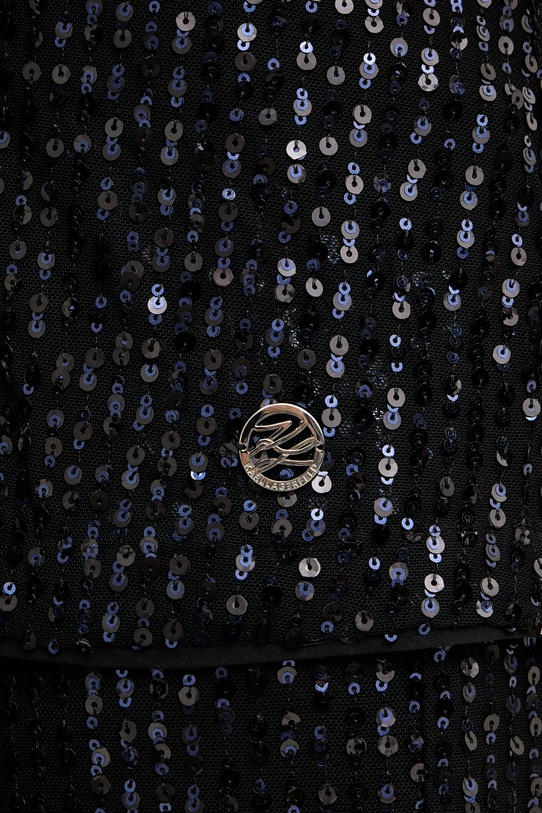Эта блузка из коллекции Karl Lagerfeld выполнена из тонкой эластичной ткани с эффектным мерцающим эффектом. - Простой дизайн, не стесняющий движений. - Модель с высоким воротом. - Застегивается на пуговицы сзади. - Рукава с манжетами на пуговицах. - Модель поставляется с верхом, застегивающимся на кнопки. - Модель с декоративными пайетками. - Длина рукава: 64 см. - Длина: 71 см. - Ширина под мышками: 51 см. - Размеры указаны для размера: 36.
