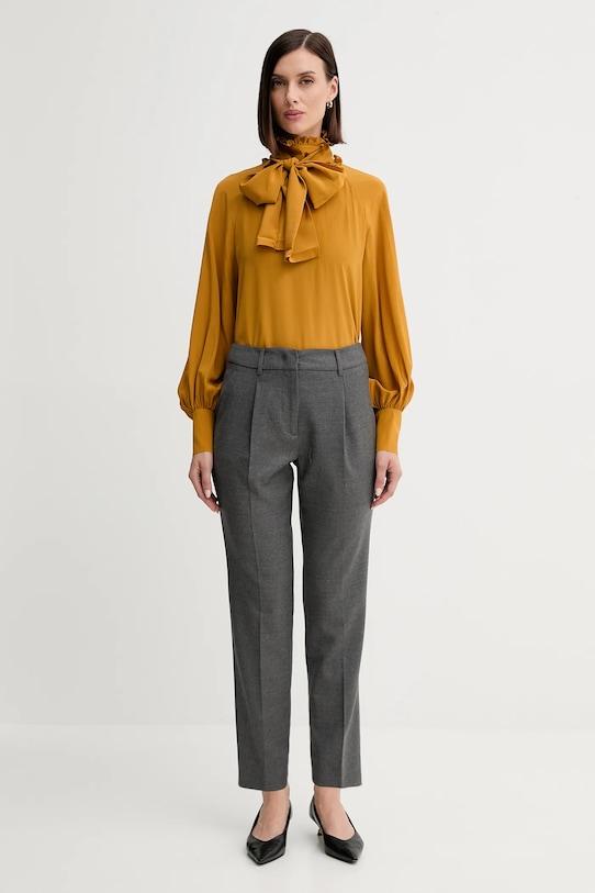 Брюки из коллекции Max Mara Weekend из гладкой ткани. Высокие терморегулирующие свойства шерсти позволяют согреться в холод и охладиться в жару. - Простой дизайн, не стесняющий движений. - Штанина отутюживается в складку. - Модель с высокой талией, застежкой на молнию и крючок. - Два боковых накладных кармана. - Тонкая, слегка эластичная ткань. - Ширина талии: 37 см. - Ширина бедер: 57 см. - Высота талии: 29 см. - Ширина штанины внизу: 17 см. - Ширина штанины: 32 см. - Длина по внутреннему шву: 71 см. - Размеры указаны для размера: 36.