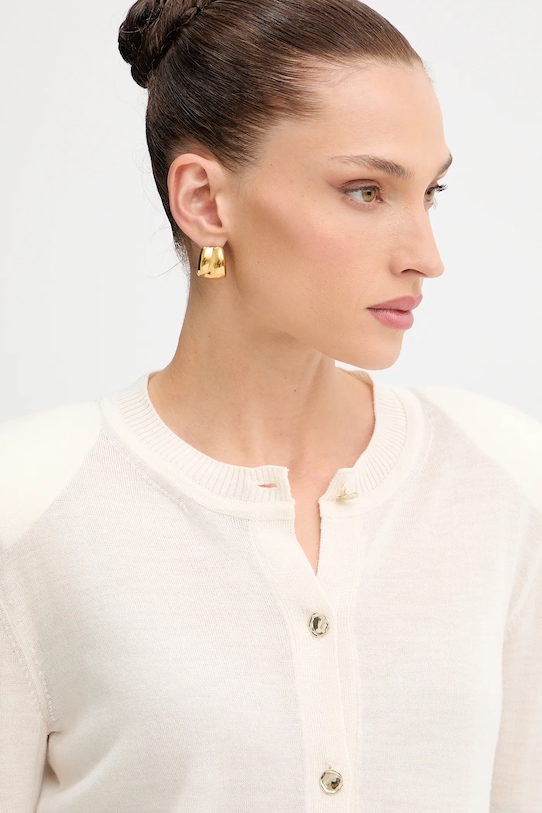 Этот кардиган из коллекции Simona Corsellini выполнен из тонкой эластичной ткани. Высококачественный продукт, произведен в Италии. - Изготовлено из лёгкого, эластичного трикотажа из мериносовой шерсти. Этот материал обладает естественной воздухопроницаемостью, впитывает влагу и предотвращает появление запахов. - Простой дизайн, не стесняющий движений. - Длинные, прилегающие рукава. - В плечах вшиты подкладки. - Удобная застежка на кнопки позволяет легко надевать и снимать. - Рукава и низ изделия отделаны манжетами для защиты от неблагоприятных погодных условий. - Длина рукава: 69 см. - Длина: 60 см. - Ширина под мышками: 50 см. - Размеры указаны для размера: S.