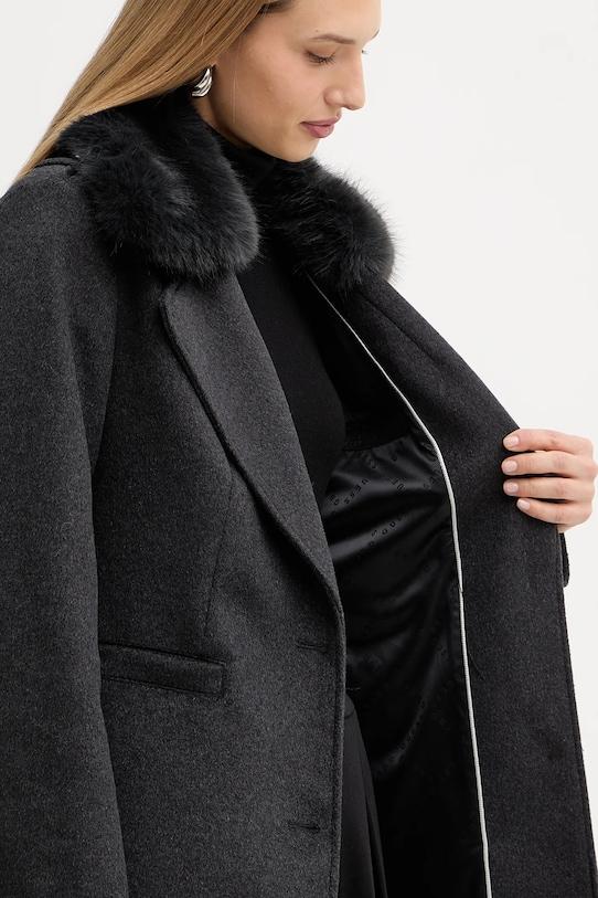 Это пальто из коллекции Guess - переходный фасон, выполненный из гладкой ткани. Содержание полиэстера делает материал менее мнущимся. - Содержит переработанный пластик. - Простой дизайн, не стесняющий движений. - Дополнительный слой материала в виде подкладки. - Классические лацканы. - Модель со съемным искусственным мехом. - Однобортный пиджак с застежкой на пуговицы. - В плечах вшиты подкладки. - Погоны на плечах. - Три накладных кармана спереди. - Дополнительный внутренний карман позволяет безопасно хранить мелкие предметы. - Разрез сзади обеспечивает свободу движений и лучшую подачу материала. - Плотная, слегка эластичная ткань. - Длина рукава: 63 см. - Длина: 110 см. - Ширина под мышками: 46 см. - Ширина плеч: 40 см. - Размеры указаны для размера: S.