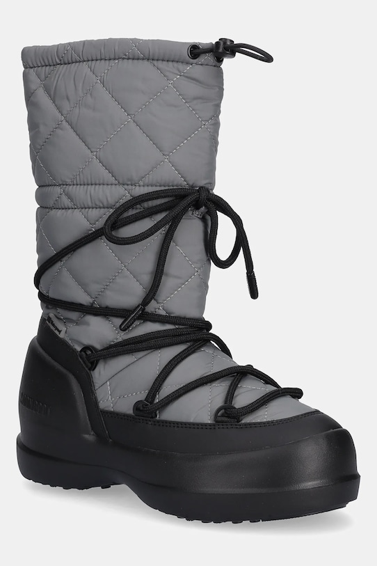 Эти зимние ботинки из коллекции Moon Boot изготовлены из текстиля. Они оснащены текстильной стелькой, которая обеспечивает комфорт стопе и позволяет легко содержать их в чистоте. - Водонепроницаемая модель. Водостойкость означает повышенную устойчивость к воздействию воды. Изделие сохраняет свои свойства при контакте с водой, что обеспечивает больший комфорт благодаря более низкому порогу водопроницаемости, но не гарантирует полной водонепроницаемости. - Круглый нос. - Резиновая подошва прочная и устойчивая к повреждениям. - Регулировка обхвата верхней части изделия с помощью кулисок со стопорами.