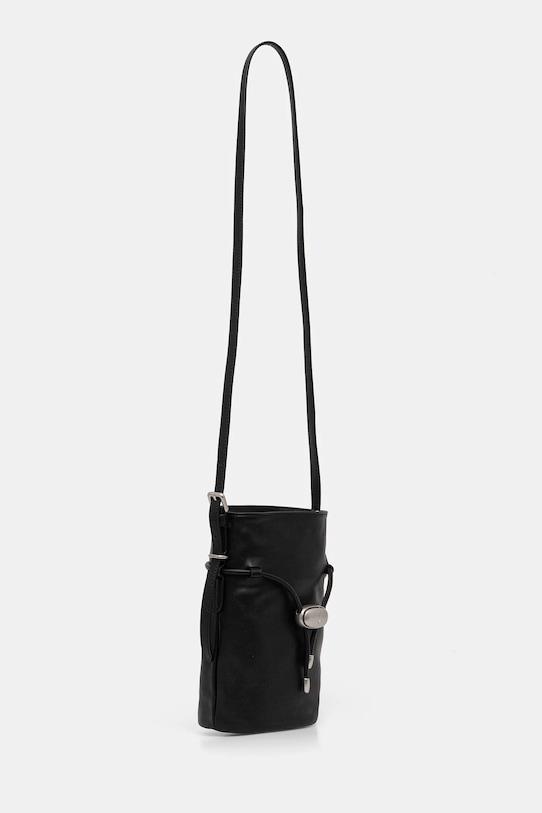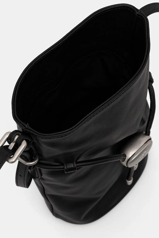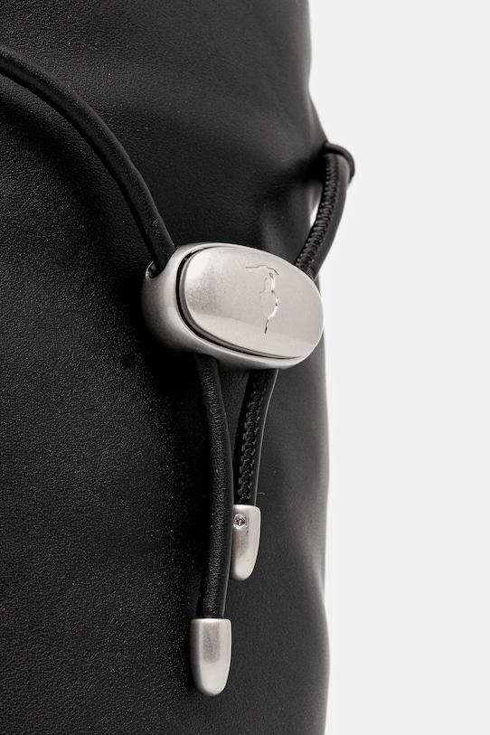 Небольшая сумочка из коллекции Trussardi. Модель на молнии, выполнена из натуральной кожи. - Камера затягивается шнурками. - Несъемный, регулируемый ремешок. - Модель не имеет внутренних карманов. - Входящий в комплект тканевый чехол защищает изделие от пыли. - Не подходит для формата А4. - Модель на подкладке. - Минимальная длина ремешка: 102 см. - Максимальная длина ремня: 118 см. - Глубина: 10 см. - Высота: 23 см. - Ширина у основания: 15 см.