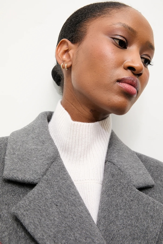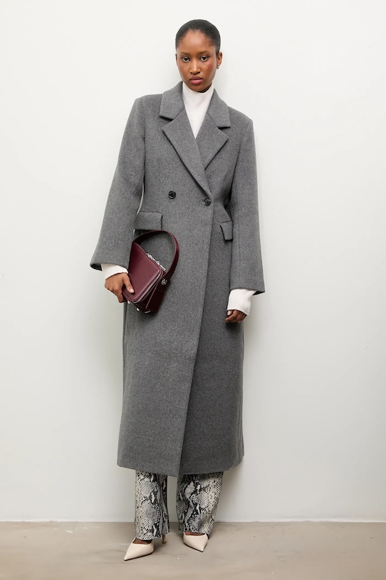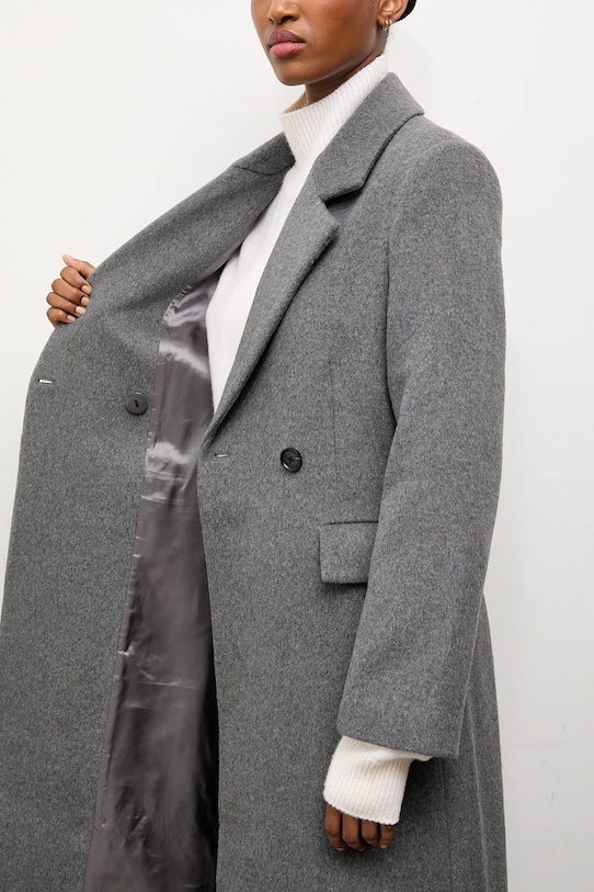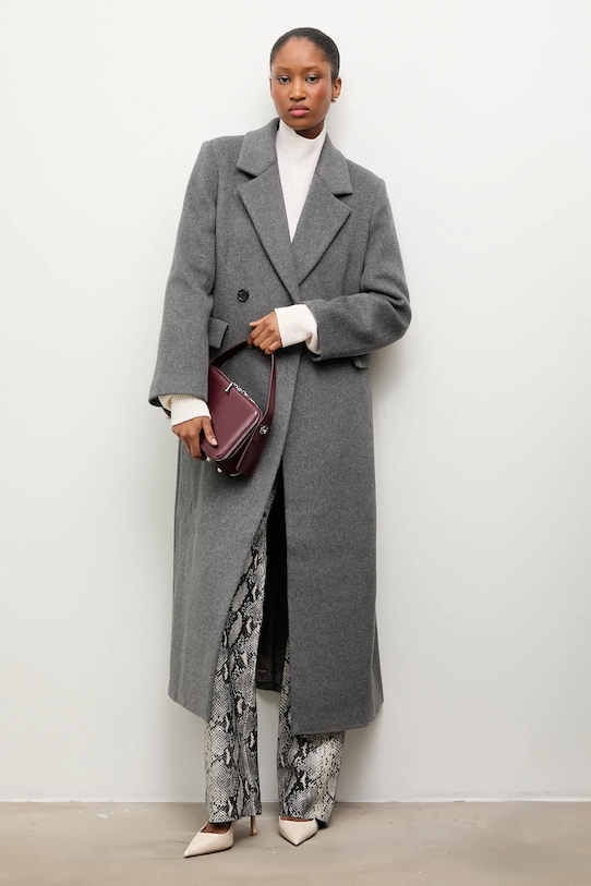 Пальто из коллекции Answear.Lab. Эта переходная модель выполнена из гладкого материала. Высокое содержание шерсти обеспечивает защиту от холода, а добавление полиэстера повышает устойчивость к сминанию. - Простой дизайн, не стесняющий движений. - Дополнительный слой материала в виде подкладки. - Классические лацканы. - Двубортный пиджак с застежкой на пуговицы. - В плечах вшиты подкладки. - Длинный рукав. - Два накладных кармана спереди для удобного хранения мелких предметов. - Модель с декоративными клапанами. - Разрез сзади обеспечивает свободу движений и лучшую подачу материала. - Длина: 128 см. - Длина рукава: 60 см. - Ширина под мышками: 50 см. - Ширина плеч: 40 см. - Размеры указаны для размера: S.